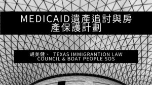 Texas Immigration Law Council 透過德州中文台《法律101》,說明 Medicaid 遺產追討計畫(MERP)、房產保護方式,以及休士頓低收入家庭可申請的免費法律服務。